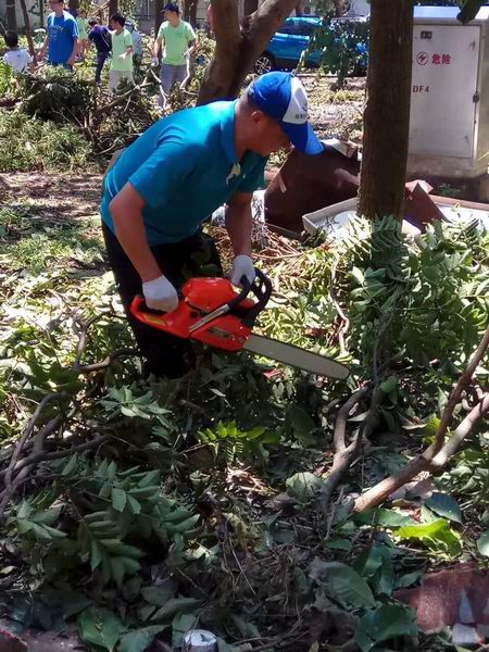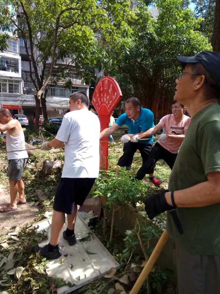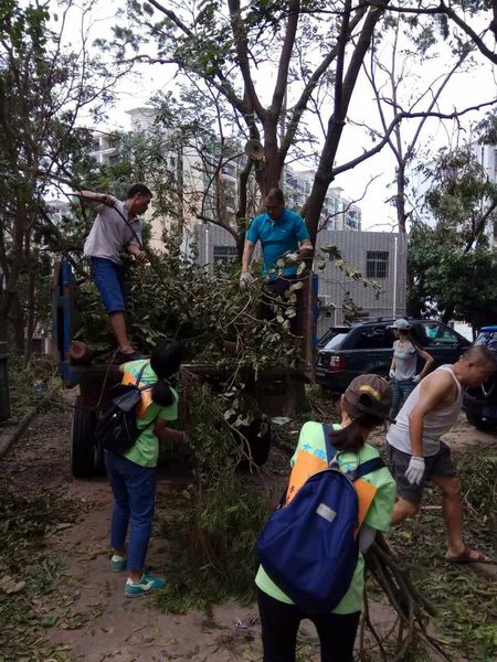 但災難打不倒樂觀的廣東人,臺風過后,人們立即行動起來,積極投入到恢復重建當中。26日,是風災過后第一個周六,不少珠海人自發地走上街頭,加入義工隊伍,親身參與城市清理工作,打通道路,恢復交通。