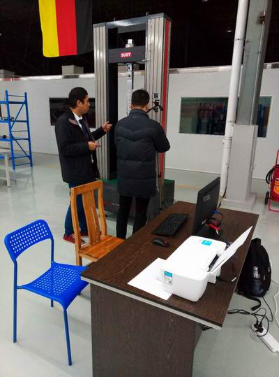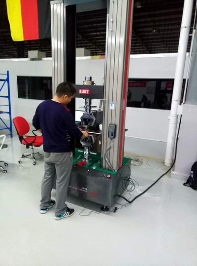該公司使用三思泰捷的萬能試驗機主要用于航空材料的力學測試,圖為產品測試中。